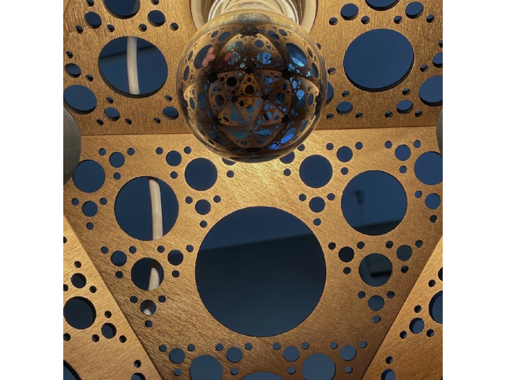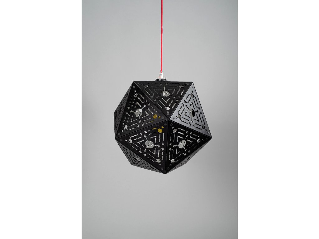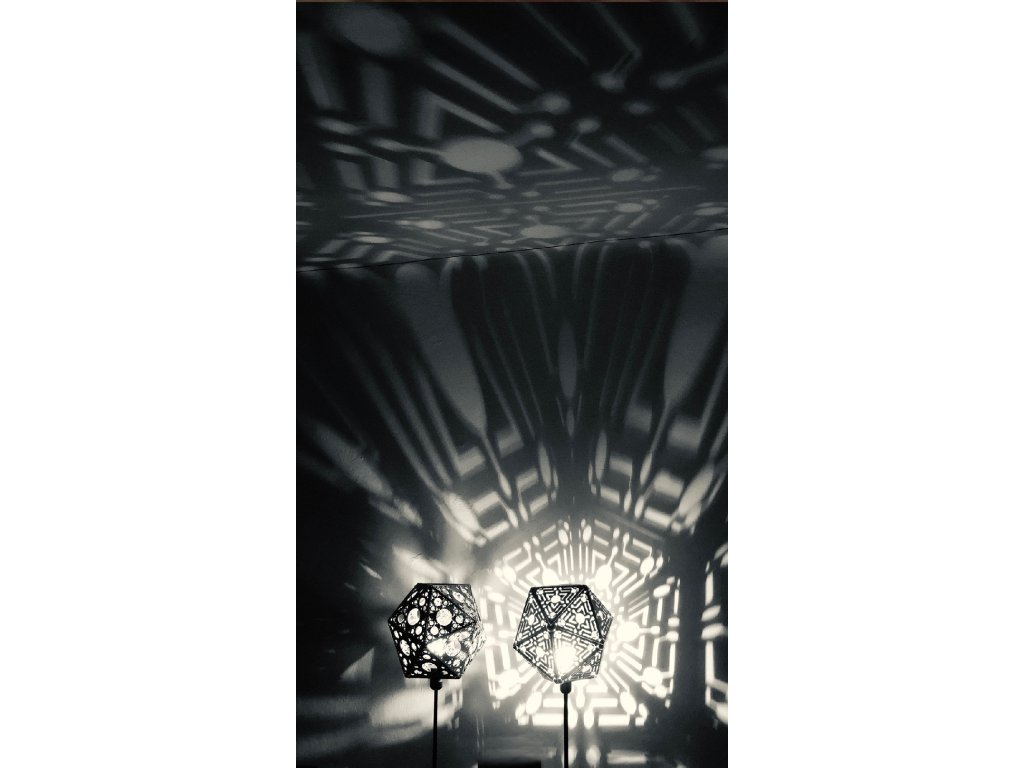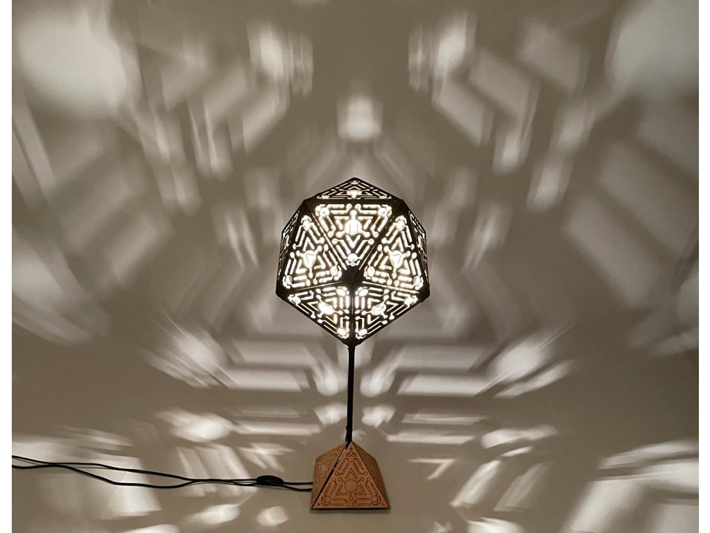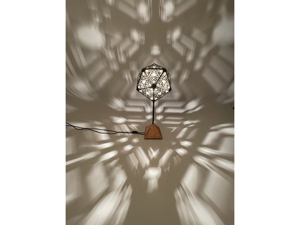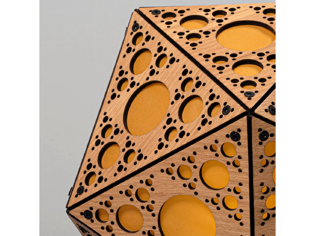 Základní verze 20 HEDRON o průměru 35 cm je ideální pro intimnější prostory – nad noční stolek, do meditačního koutu, nebo jako centrální bod menší místnosti. Jeho velikost umožňuje detailní pozorování geometrických vzorů z blízka. Dokonalé pro osobní rituály, večerní čtení psychedelické literatury nebo jako průvodce během introspektivních večerů.