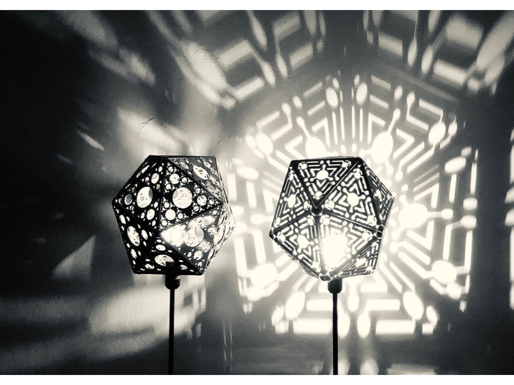 Světelný objekt inspirovaný platónským tělesem icosahedron – dvacetistěnem reprezentujícím vodní živel. Dvacet rovnostranných trojúhelníků tvoří ikosahedrickou symetrii a kreslí geometrické vzory do prostoru kolem vás.