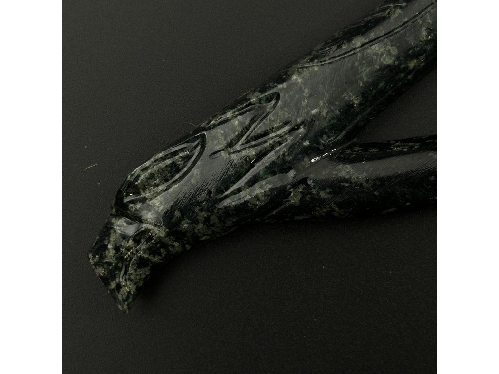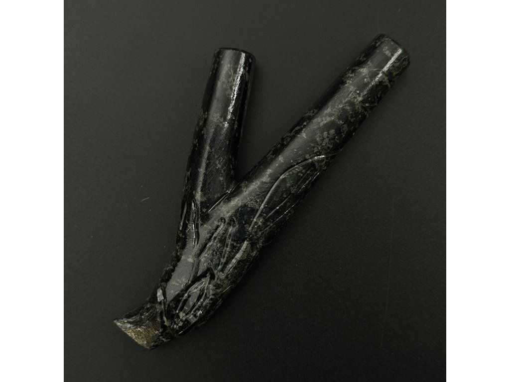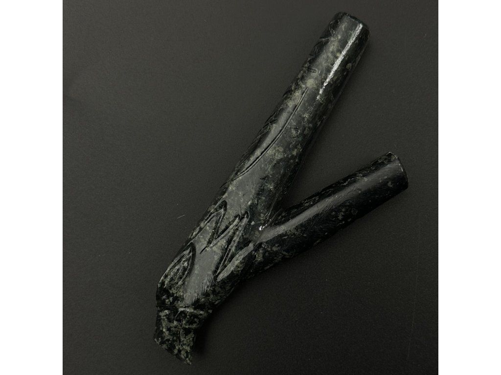 Kamenná foukačka na rapé s vyobrazeným kondorem – jedním z posvátných zvířat.