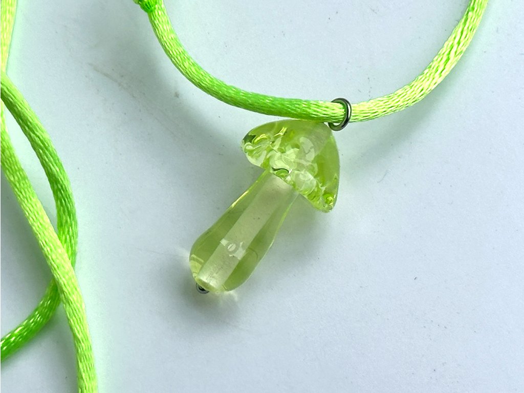 Skleněný přívěsek je ručně vyrobený technikou vinutí.