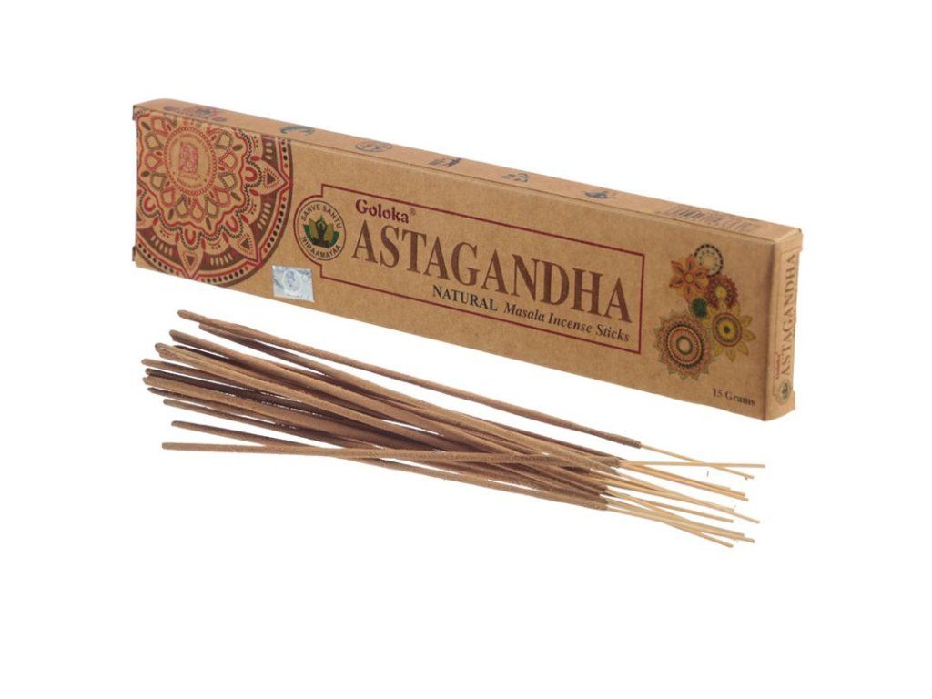 Astagandha je rostlinou, která je tradičně využívána v indické ajurvédě díky mnoha příznivým účinkům. Mezi ně se řadí například zlepšení koncentrace, zpomalení stárnutí, překonání vyčerpání, úzkosti a mnoho dalších. V podobě vonné tyčky z vysoce kvalitních surovin je zdrojem pryskyřičně sladké vůně, velmi oblíbené na náboženských místech v Indii. V našem kontextu si můžeš vybrat tuto vůni pro navození harmonického settingu, který tě příjemně zklidní a uvolní.